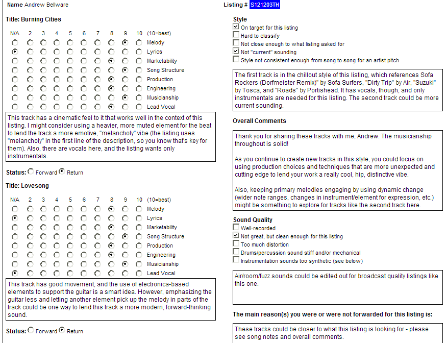 This is probably the single most helpful critique I've gotten from Taxi. First of all, it reiterated the one thing I'm coming to grips with about my music.